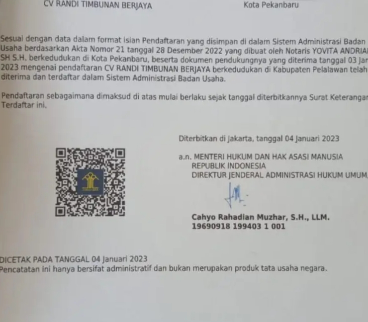 Menurut Jhon, legalitas perusahaan tersebut tidak sah karena tidak memiliki izin resmi dari Dinas Sumber Daya Mineral (SDM) Provinsi Riau. Ia menegaskan, selama ini aktivitas perusahaan hanya berjalan karena pimpinan perusahaan seolah-olah kebal hukum.