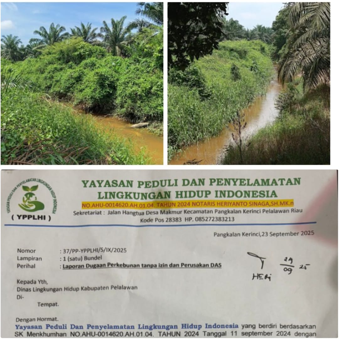Pelalawan – Yayasan Peduli dan Penyelamatan Lingkungan Hidup Indonesia (YPPLHI) resmi melayangkan laporan kepada Dinas Lingkungan Hidup (DLH) Kabupaten Pelalawan terkait dugaan aktivitas perkebunan tanpa izin serta perusakan Daerah Aliran Sungai (DAS) oleh PT. Mirabilis Agro Sampatti (MAS) di Kelurahan Pangkalan Kerinci Barat, Kecamatan Pangkalan Kerinci, Kabupaten Pelalawan, Riau.